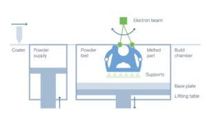 - L-PBF and E-PBF can be used for small to medium-sized components. Standard industrial machines reach up to 400 mm in each dimensions, with few machines coming up reaching up to 1m in size.